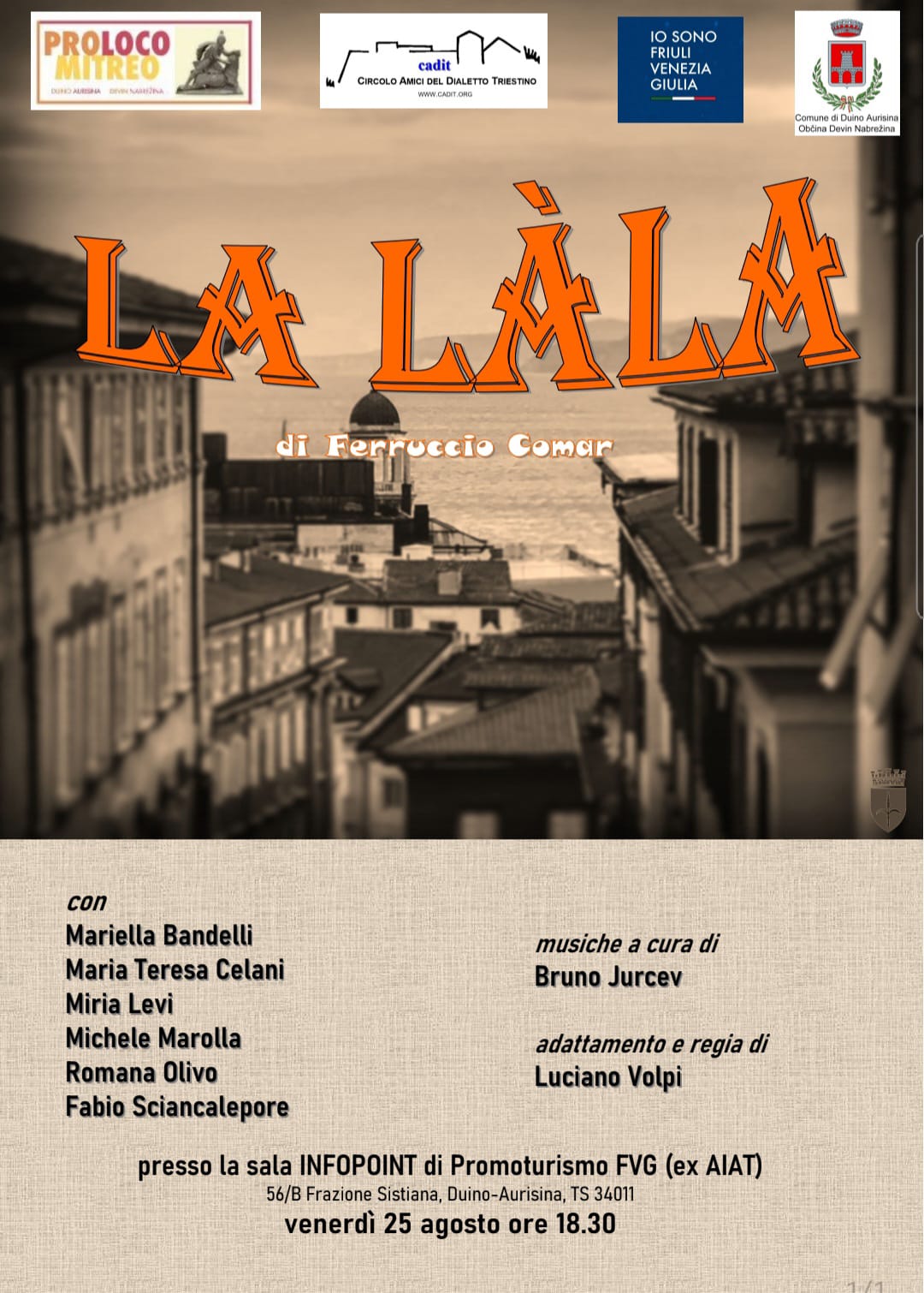 Venerdì 25 agosto, ancora a Sistiana, I Commedianti di Ugo Amodeo con la regia di Luciano Volpi hanno rappresentato l’atto unico “La Làla“.